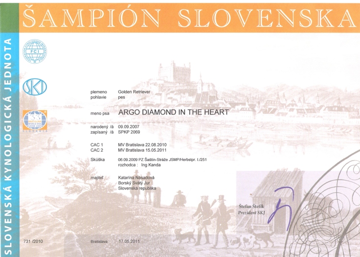 15.5.2011 sa podarilo Argoškovi ukončiť čakateľstvo na Šampióna SR. Gratulujeme!!!